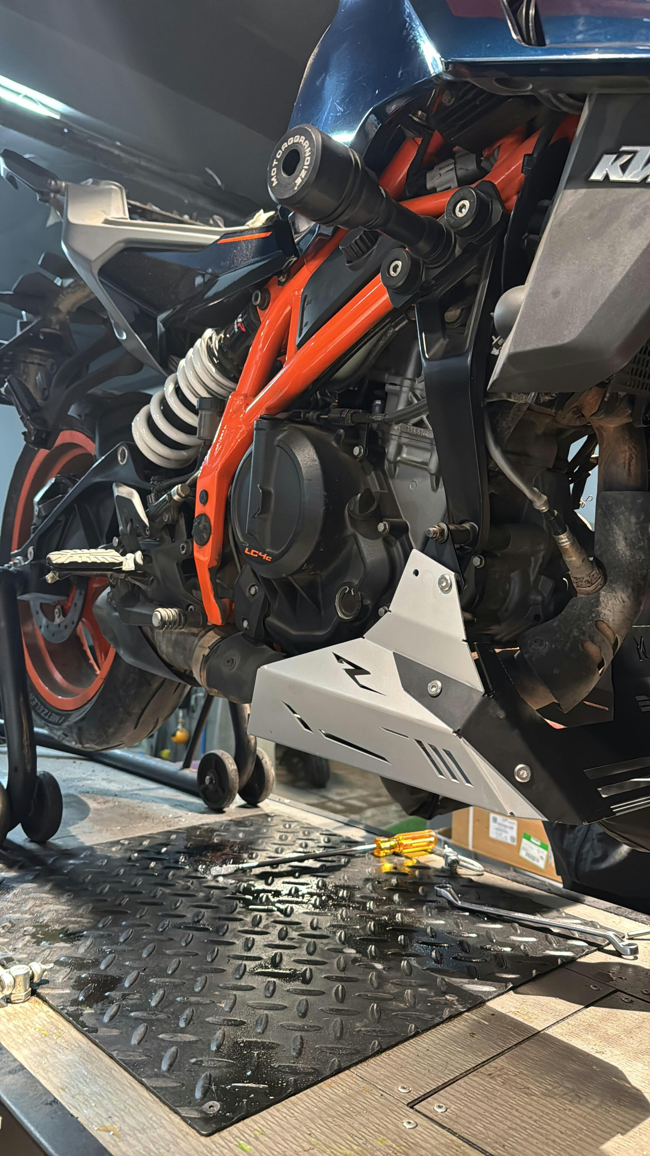 Upgrade your new-gen Duke 390 or 250 with Kyber Moto’s precision-engineered bash plate — built to protect and designed to impress.